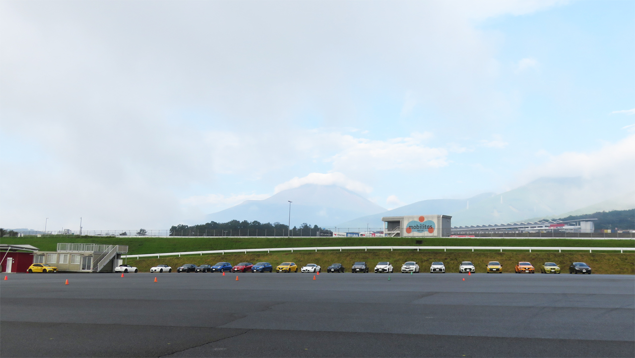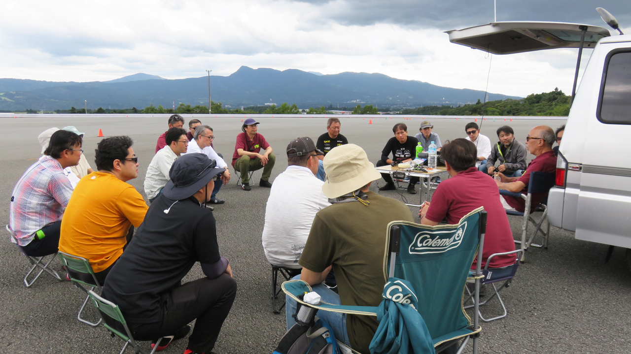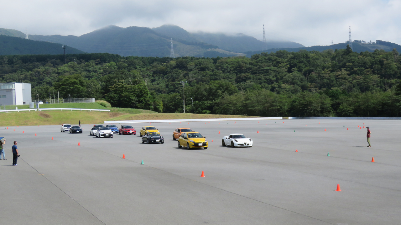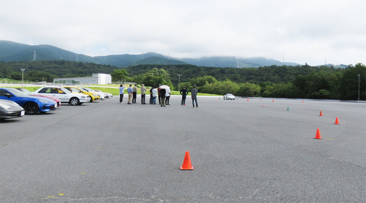 8月のとんでもなく暑い日。富士スピードウエイの広大な駐車場でYRSドライビングワークショップFSWを開催。
