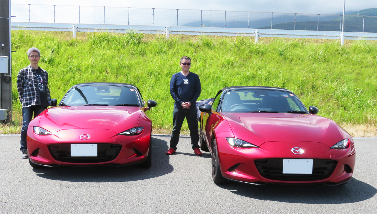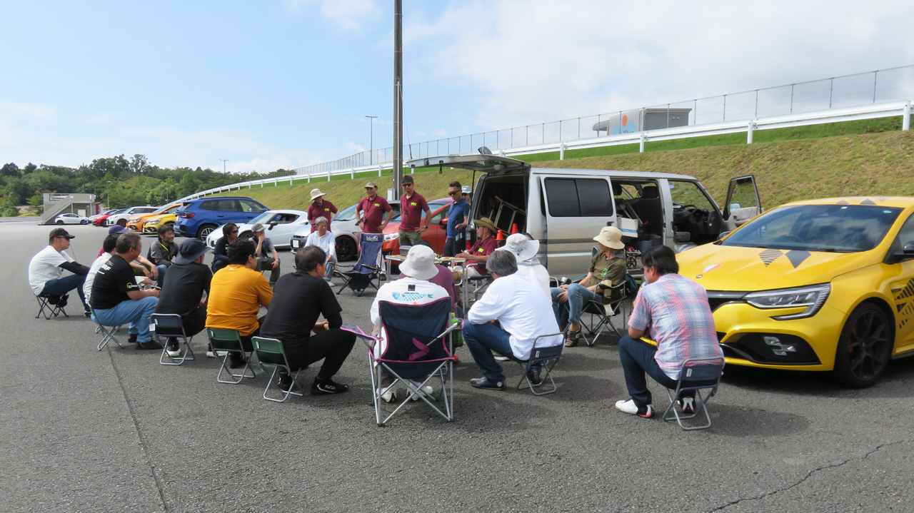ルーテシア3RSのオーナーでもあるGさん(写真右)は2018年5月のYRSオーバルスクールFSWにロードスターに乗って初めて来てくれた。2019年は3回、2020年は1回走りに来てくれていたのだけど、2021年5月のYRSオーバルスクールFSWにルーテシア3RSで参加してくれた。2022年はルーテシア3RSで1回、2022年は5月にルーテシア3RSで走っていたと思ったら9月にはロードスターで現れた。今回は新調したと言う赤いロードスターで、同じ赤いロードスターに乗る弟さんを誘って参加してくれた。