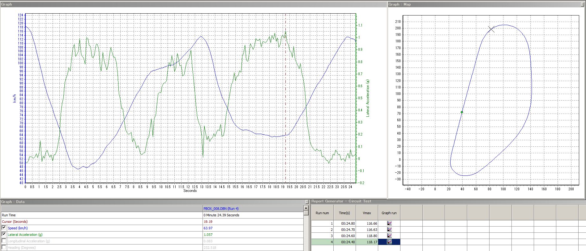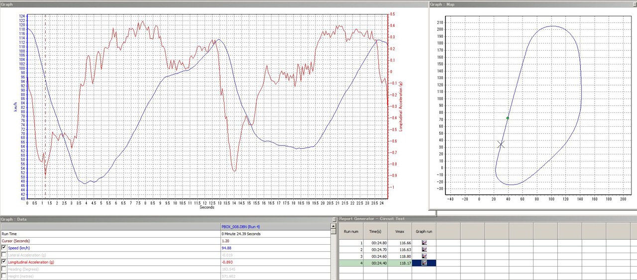 しばらく前のYRSトライオーバルで撮影した動画とデータロガーの記録。