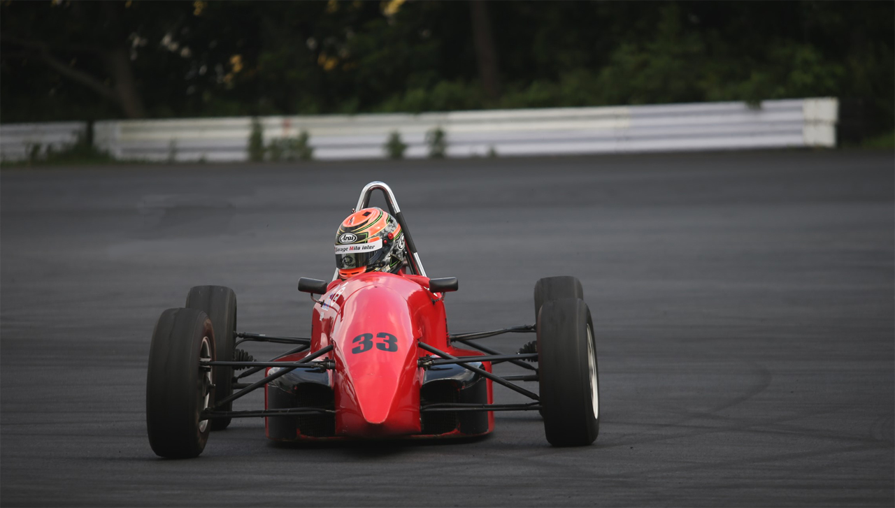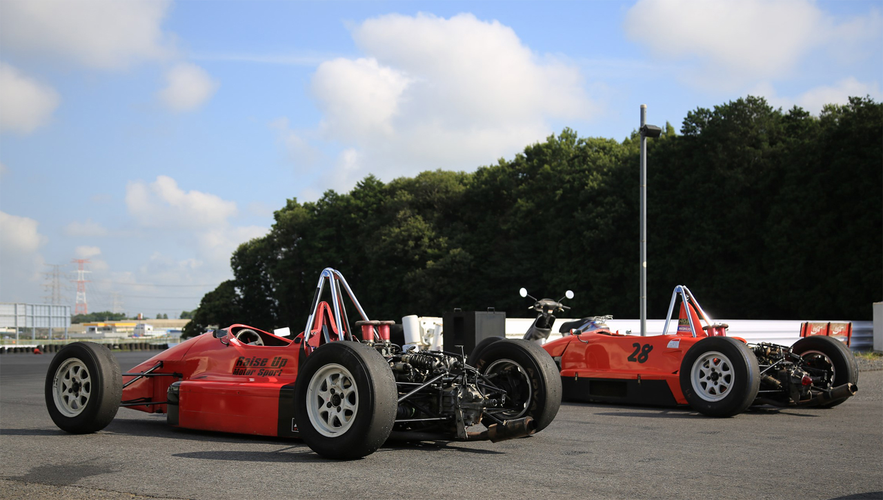 FJ1600はスバル製の1600㏄エンジンを搭載した入門フォーミュラカーとして1980年から2009年までレースが行われていた。パワーはそれほどでもないけど車重がドライバー込みで465Kgという軽さ。他にもインボードサスペンションを備えるなど本格的なマシンで、F1レースに参戦した片山選手や服部選手もFJ1600でレースデビューを果たしています。現在FJ1600のレースは行われていないけど純レーシングカーを体験する素材として各地で走っています。