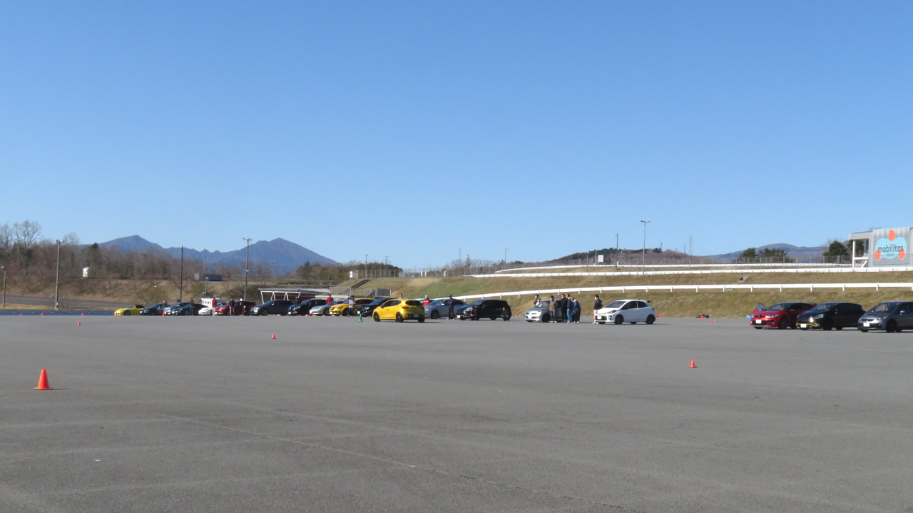 スラローム、ブレーキング、フィギュアエイト、オーバル走行で反復練習をしながら、ミーティングでドライビングポジションの話とか視線の持って行き方の説明を行い、クルマと一体になってクルマが動きやすい状況を作り出せるようになります。