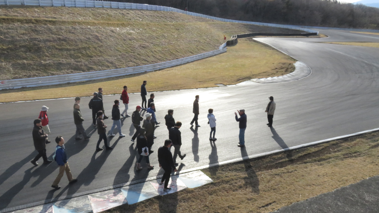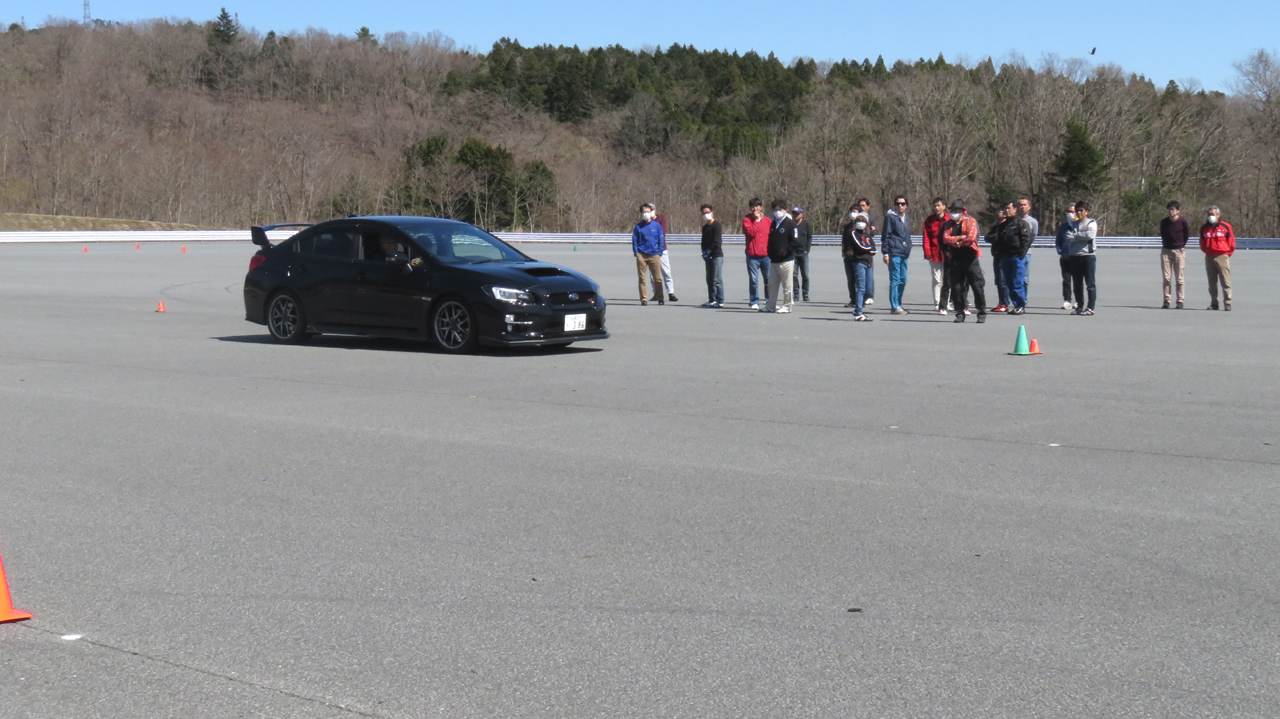 そこで加速し減速するクルマのタイヤのグリップがどう変化するか説明しながら歩きます