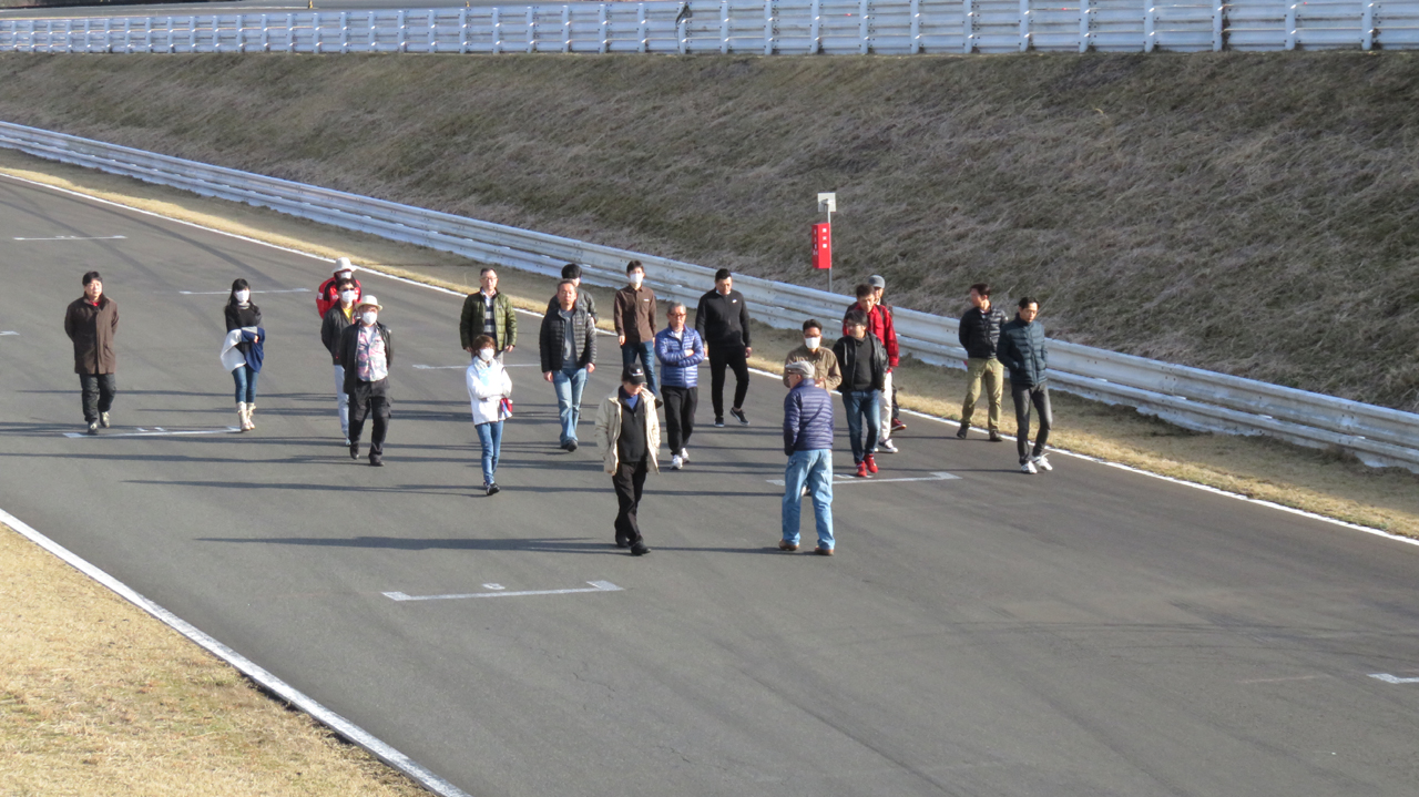 ピットロードの参加者にはスタッフがアクセルオフのタイミングと