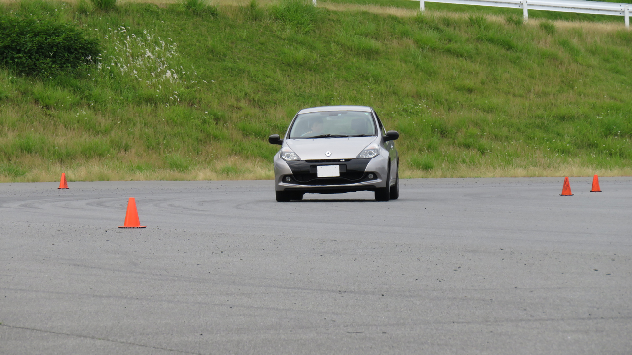 オーバルコースを何十周と周回する中で色々な操作を試せたことで、イーブンスロットルやトレイルブレーキングの理論を実体験を通して学べ、正しい運転をイメージすることができるようになったと思います。また、このように車の限界領域を使う走りをすることで、ルーテシアという車の素晴らしさをあらためて感じることもできました。