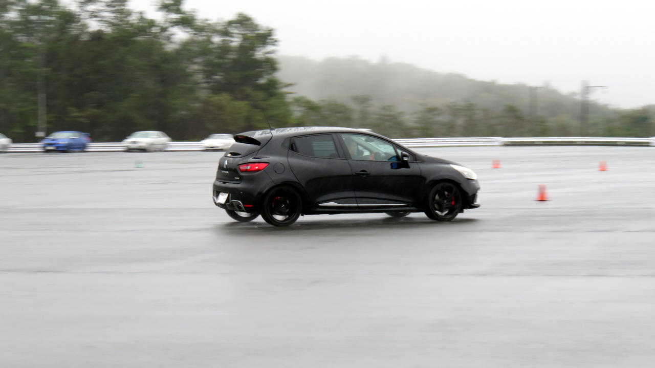だから、前輪操舵のクルマに乗っていても、内輪差がほとんど生じないコーナリングをすることが理想だし可能だ。つまり、それには前輪に生じるスリップアングルと同等のスリップアングルを後輪にも与えられるような操作が必要で、YRSオーバルスクールFSWではそのあたりのアドバイスを聴いてもらいながら練習する。ぜひ一度アンダーステアを出さない運転に挑戦してみてほしい。その前に、ご自身の操作がアンダーステアを出していないかどうか確認に来てみてはいかがだろう。