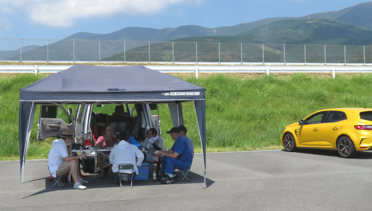 テントの下で休みながら