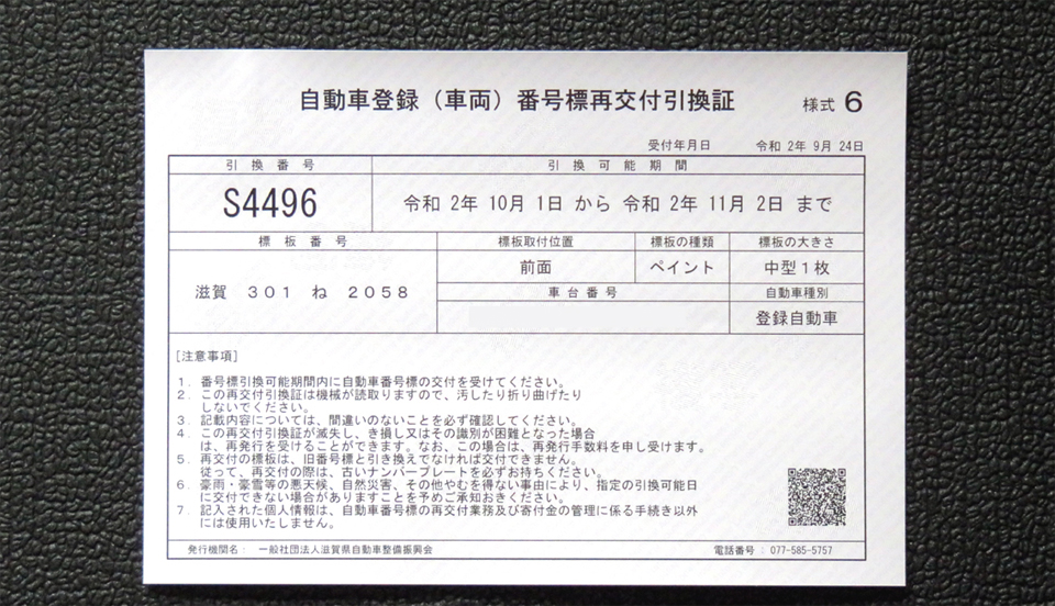 下は新品の発行に替えて返却しなければならない傷ついたナンバープレート