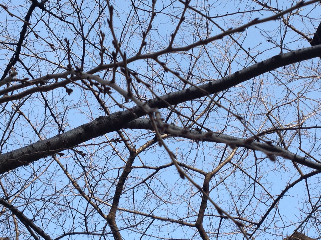 今年の湖西は寒い日が多く春を足音はまったく聞こえない。しかし、千鳥ヶ淵の桜は蕾を膨らませていた。あと数週間ってところだろうか。