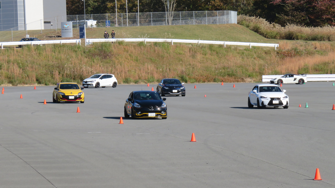 座学が終わると最初にイーブンスロットルでコーナリングするクルマを観察してもらう