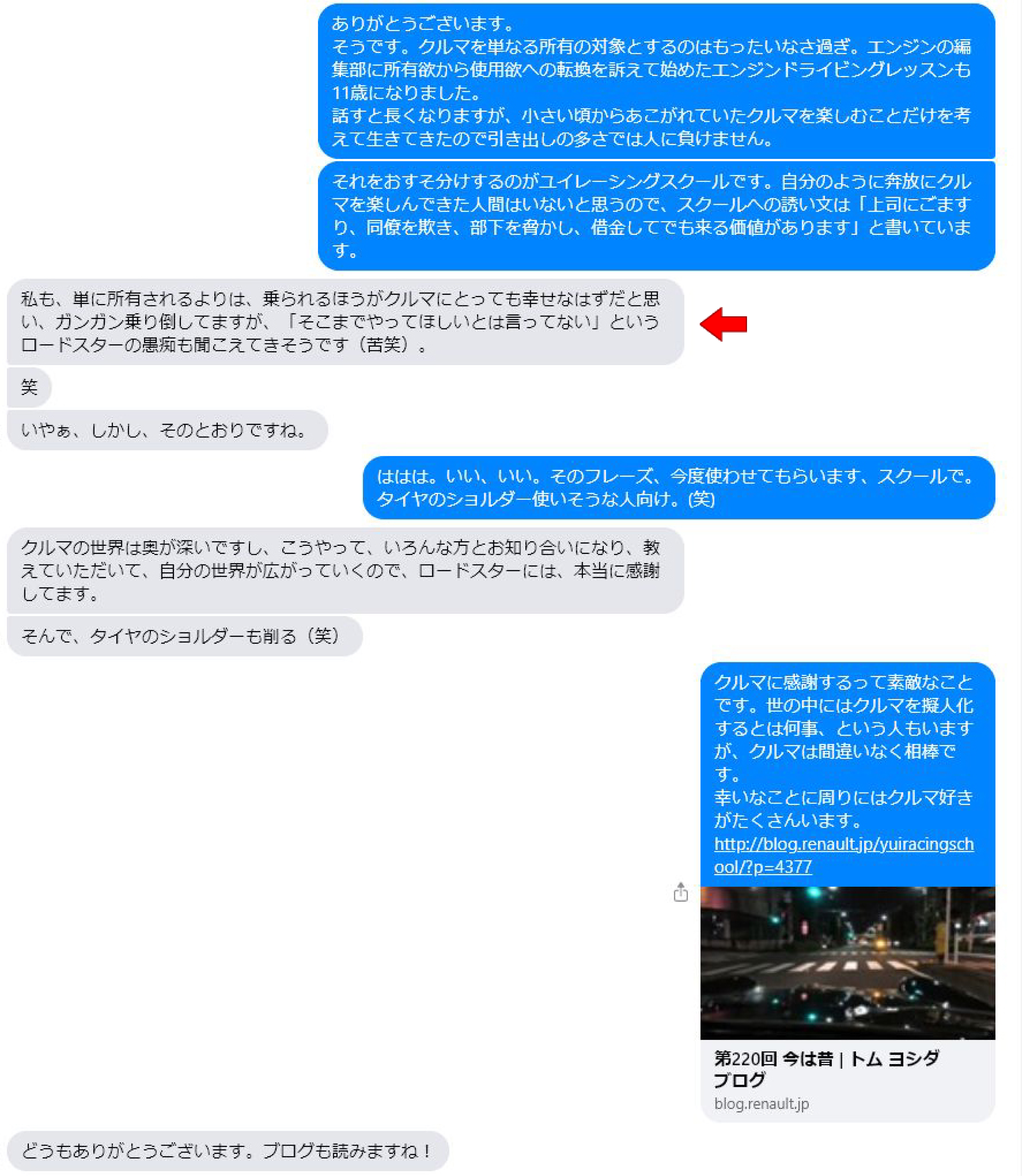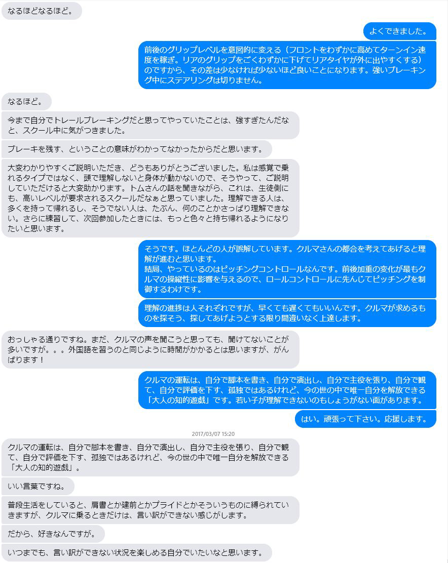 過去にYRSオーバルスクールに参加してくれたYさんとのやりとりを載せるのを承諾してもらって。 Yさんはクルマの運転を全開で楽しみ中。