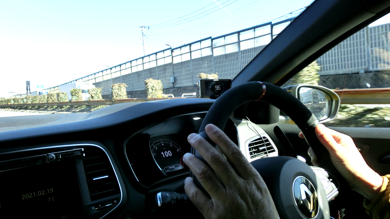 空気抵抗はCD値X前面投影面積X速度の二乗で求められると言うけどCD値は乗用車なら0.3ぐらいだろうし、メガーヌRSとルーテシアⅢRSの全幅X全高を比べても4%ぐらいの差しかないし、結局は上昇した速度が走行抵抗に大きく影響しているのではないか。むろん高出力なのに前面投影面積が小さいクルマや空気抵抗係数が極端に小さいクルマには当てはまらないと思うけど、一般的なクルマだとこのあたりで速度の二乗に比例し加速度的に大きくなる空気抵抗に抗うため、エンジンが我々が思っている以上に頑張り始め、その結果予想以上に燃費が低下したのではないかと想像したわけだ