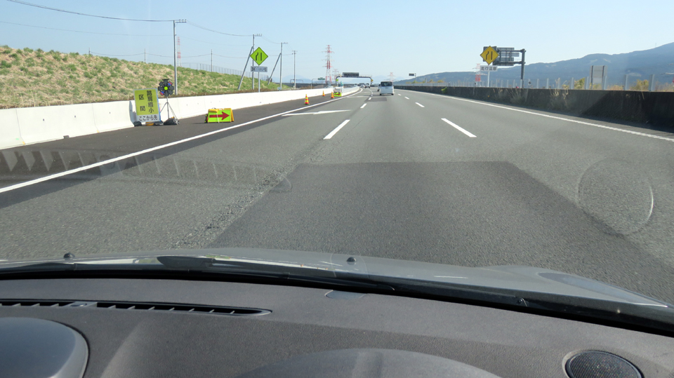 御殿場ジャンクションに近づくと3車線の左レーンが消滅し2車線に