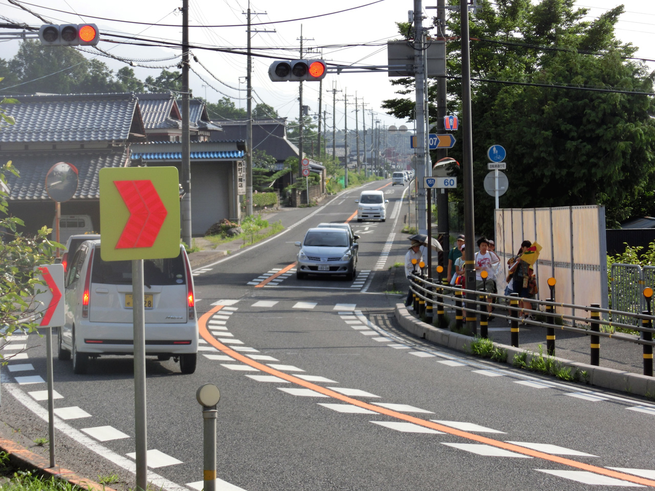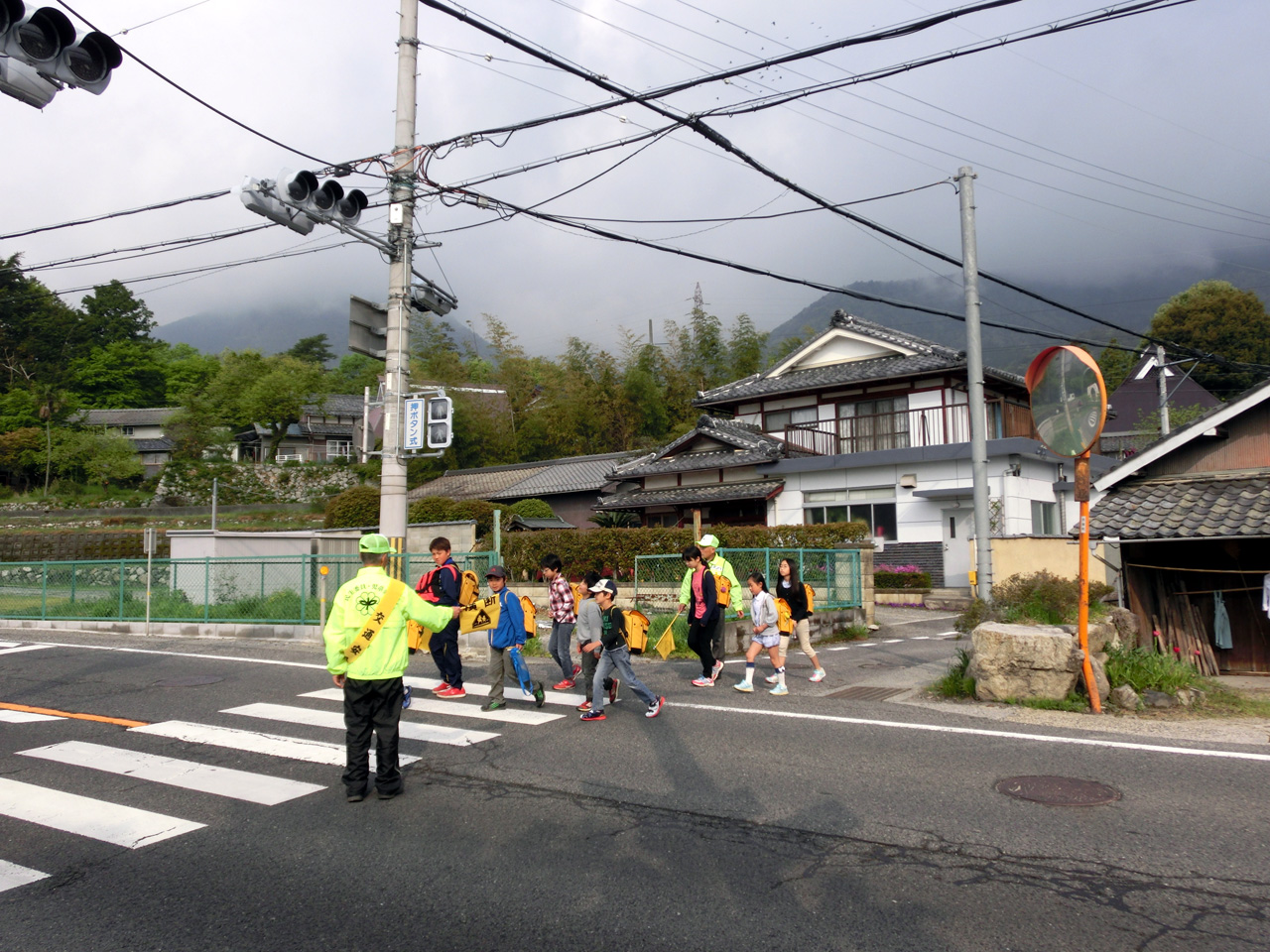子供達は交差点手前の集合場所に集まり全員がそろうと交差点にやってくる。協会の方が信号機のボタンを押し横断歩道側の信号が変わるのを待つ。子供達は、それまではしゃいだり声を出して笑ったりしてたのに、急に寡黙になり横断歩道を渡る。おはようございます、と声をかけてくれる子供も多い。横断歩道を渡りきると再び活発な子供らしさが戻ってくる。