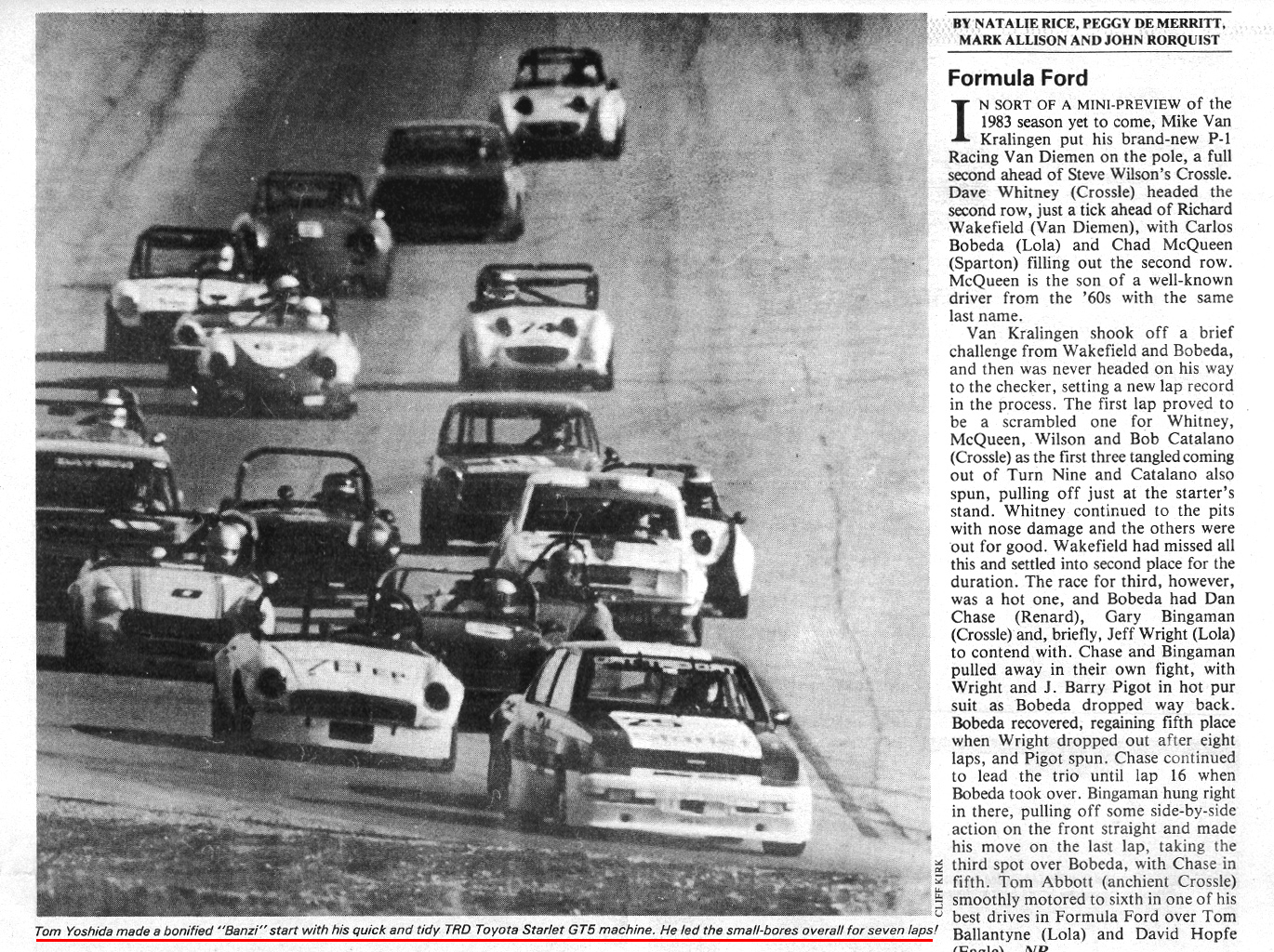 1982年12月。KP61でGT5のレースを始めた。そのKP61はふたりのオーナーの手を経てGreg Hotzの手に渡ったのが2004年。GregはフェイスブックにKP61のことを書いたのを見つけ、KP61が紹介されたアメリカの雑誌、グラスルーツモータースポーツを送ってくれた。今は2014年。GregはまだそのKP61でレースを続けている。あれから32年。ホモロゲーションが切れるとレースに参加できないFIA-ASNのレースでは考えられないライフスパンだ。