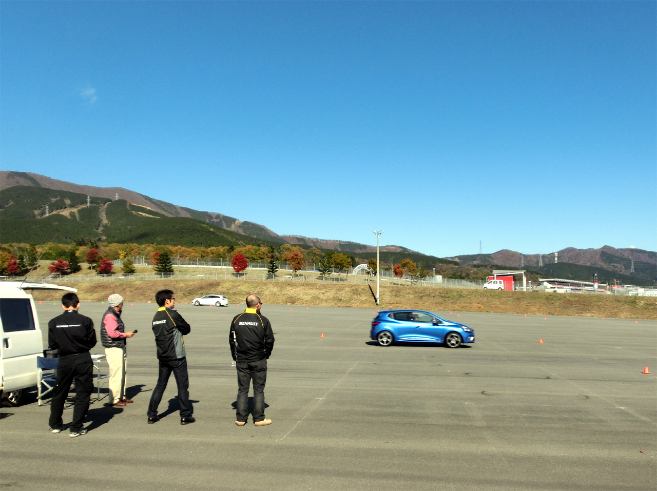 運転して楽しいRSモデルの良さをさらにさらに理解してもらおうというルノー・ジャポンのこの企画。事前にドライビングにまつわる資料を送り予習をしてもらい、富士スピードウエイのショートコースでは助手席から誰にでもできるクルマを安定させて走るための操作を見てもらい、翌日は駐車場に作った半径22m直線80mのオーバルコースをできるだけ速く走ってもらった。