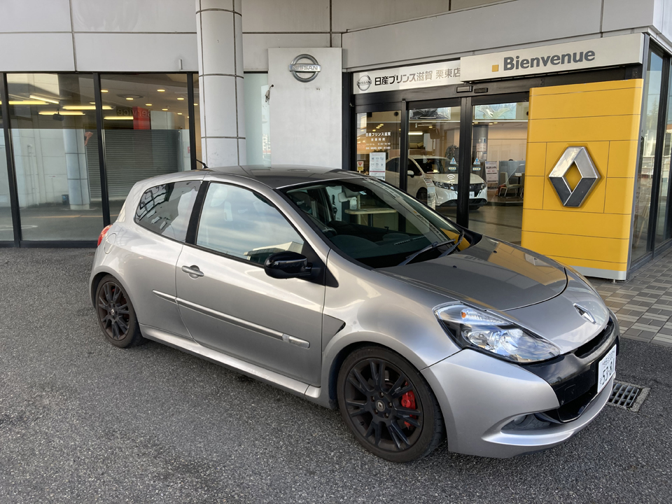 日常のパートナーとして、時にはトムさんに操られてスクールでのデモ走行披露にと大活躍の愛車です。12月を迎えてスタッドレスタイヤに交換する前に、いつもお世話になっているルノー滋賀栗東でエンジンオイル交換です。作業の間にコーヒーをいただきながら帰り道の距離を調べてみると、今日の帰り道のドライブ後が節目になりそうな予感です。オイルとオイルフィルターを交換後にお店の前で記念撮影。もちろん帰り道のエンジンはすこぶる快調。