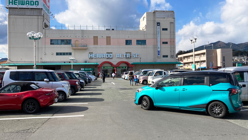 ある日のスーパーマーケットの駐車場。開店時間を過ぎると続々とクルマがやってきて瞬く間に駐車場は満杯になる。商業施設の駐車場では入口からできるだけ遠くにクルマを止めて歩く距離を稼いでいる。と言ってもわずかだけど。(笑) で、歩きながらいろいろな光景に出くわす。