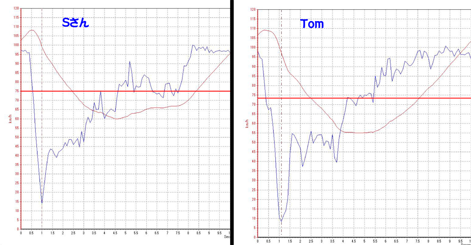 いつもお世話になっております。 スクールだけでなく、ブログの内容もいつも興味深く拝読させていただいています。 今回の比較、とても勉強になります。 前半のブレーキング操作の違い(特に抜き方)も大きいですが、更にコーナリング中のイーブンスロットル操作の差が大きいように感じます。 私もよくやってしまいますが、Sさんの6-7.5秒あたりのGの落ち込みに対して、トムさんはずっと加速Gを保つようにイーブンスロットルから全加速につなげていますが、このような操作の違いを生む要因は何だとお考えですか?