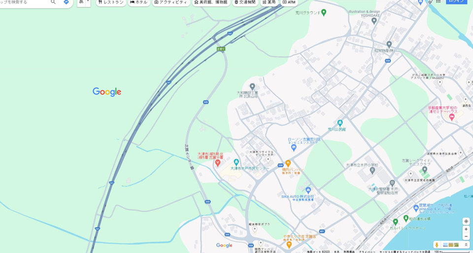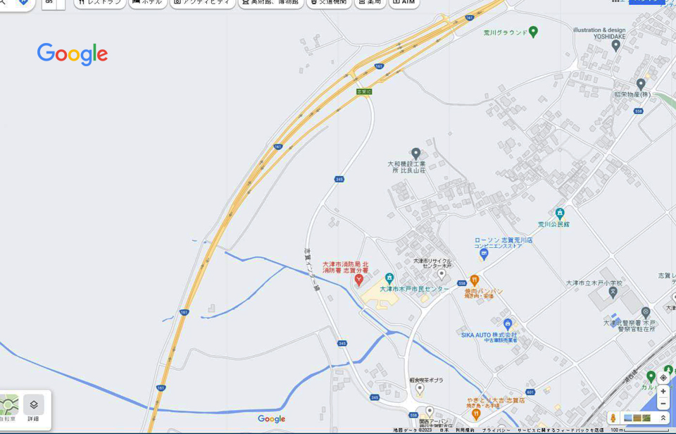 県道558号線志賀駅口交差点から志賀ICまでのルートを俯瞰