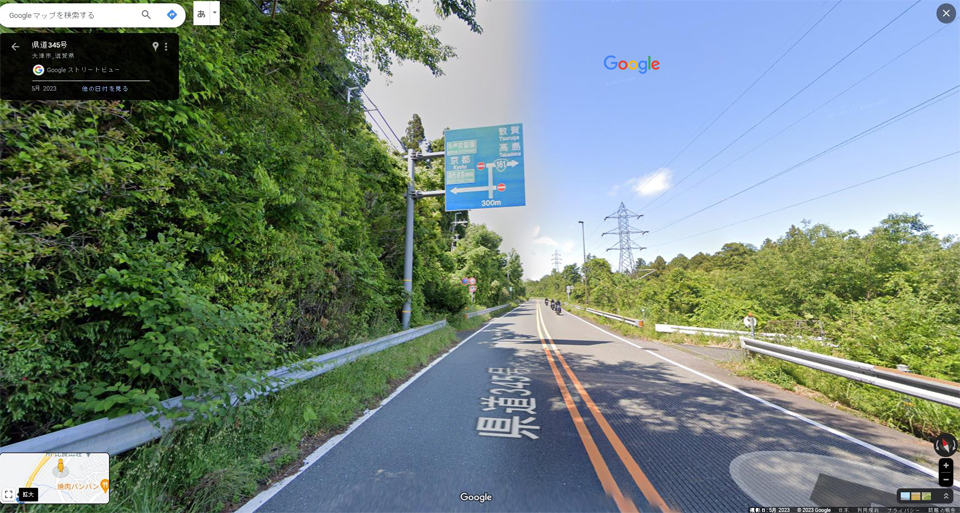 湖西道路の手前の側道を左折すれば京都方面。湖西道路をくぐってから右折し側道に入れば敦賀方面に向かう志賀IC。今回は志賀IC直前にあるブラインドの左コーナーがテーマ。コーナーを抜ける時にどうすればクルマの性能を生かしながら敦賀方面に右折できるかというお話。ボク自身はこの道を通るたびにこのコーナーを大いに楽しんでいる。