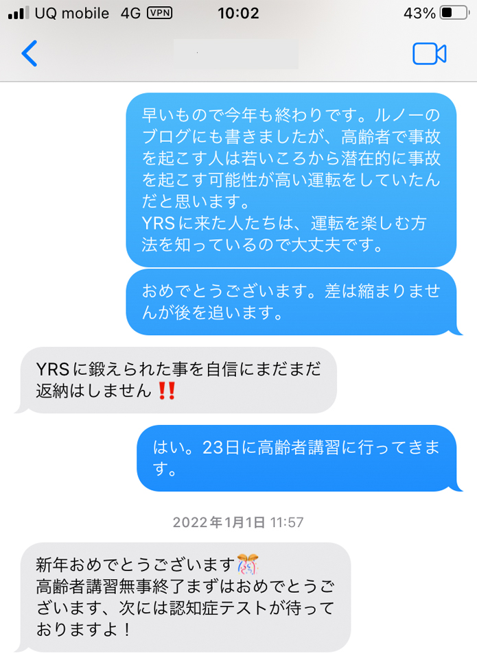 その反動なのかもしれないけど『一生懸命運転して事故を起こさないようにしたい』、『高齢者の運転の模範たりたい』 と思っている。おそらく、間違いなくWさんもそう思っているはずだ。その意味で、ユイレーシングスクールがWさん自身が行う技能点検の場になっているのならば幸いだ。