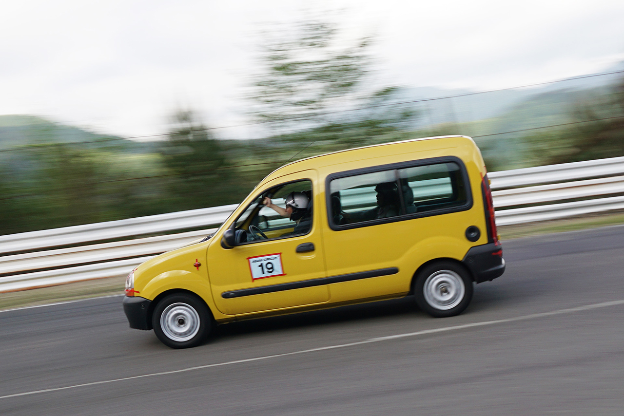 とにかく、コース上にクルマが走っていない時間がないほど、1周40秒台後半~50秒台前半のコースを入れ替わり立ち代わり走ること走ること。 「今日がサーキット初めてなんです」と言ってた方々が、目を三角にするでもなく周回を重ねる。それも初めてにしては大したペースで。 ちょっともったいないところがあったのでアドバイスしたら、その方はベストラップを更新。 カングーも走っていたから速度差は大きかったけど、譲るところは譲り、譲られるまでは待つという秩序あふれる、それでいて楽しさ満点の時間が5時まで続いた。