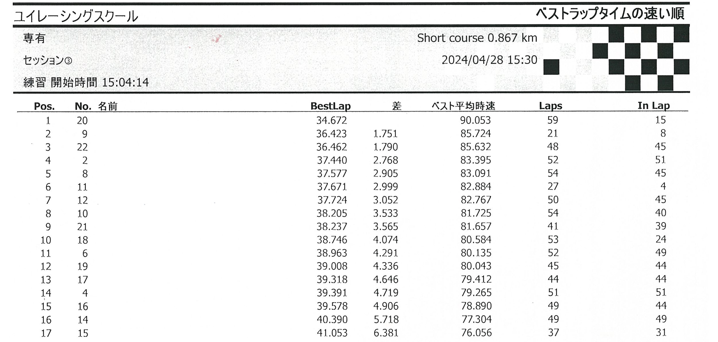 速いラップタイムよりもベストラップが何周目に出たかが肝心