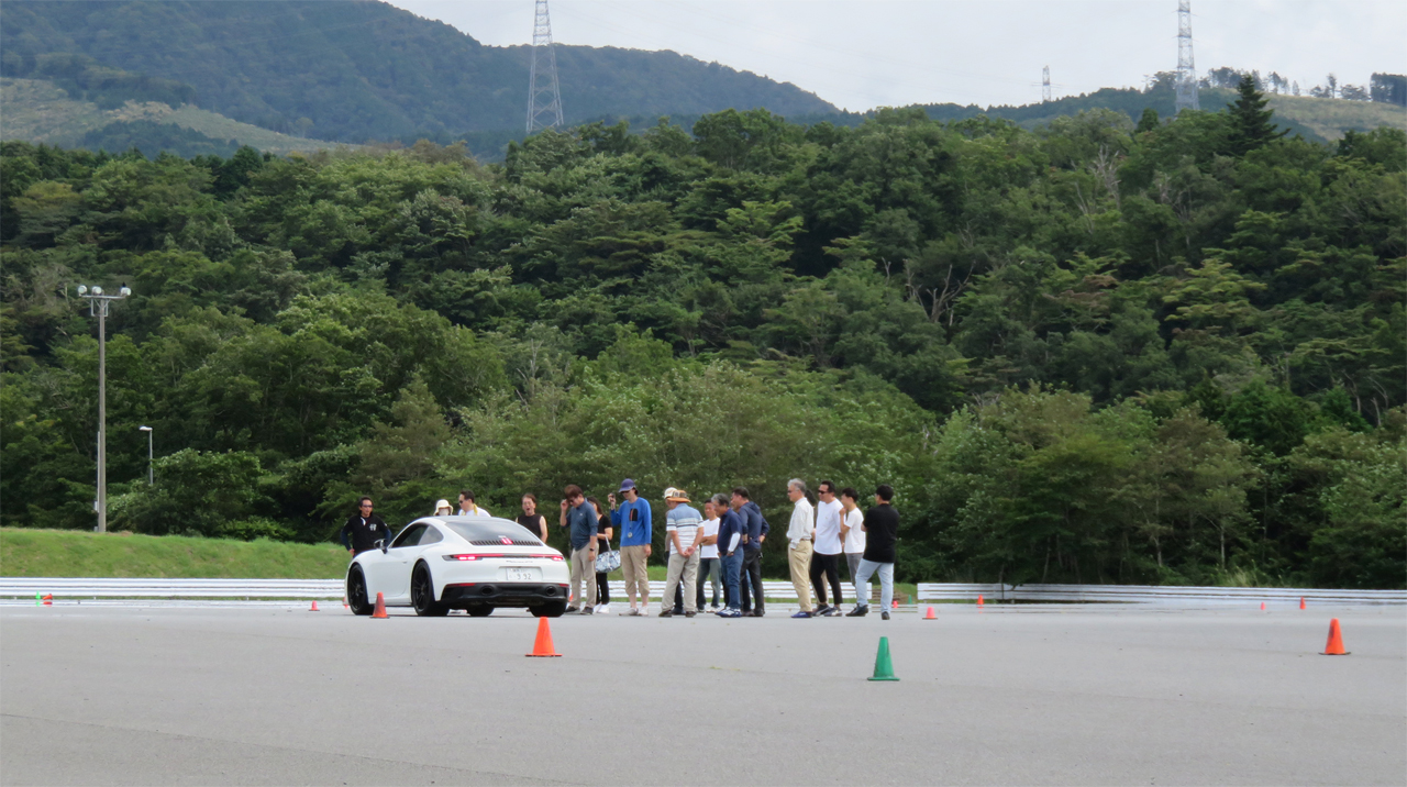 2日目のショートサーキットを周回するのは楽しいのですが、なかなか思うように行きませんでした。トムさんをはじめインストラクターの方に同乗走行をお願いして、まず走行のメリハリ、走行姿勢の安定性、コーナリングスピードの速さに驚かされました。また僅かに疑問が解けたというか自分の出来ていない部分を(多少ですが)理解できました。さらに他の参加者の方々がも色々アドバイスして頂きました。そのおかげで僅かにタイムも向上したのですが、あらためて初日のスラローム、ビッグブレーキ、スモールブレーキ、オーバル走行の練習がショートサーキットでの走りに大切なんだと気付かされました。