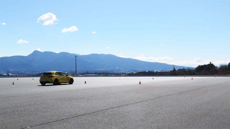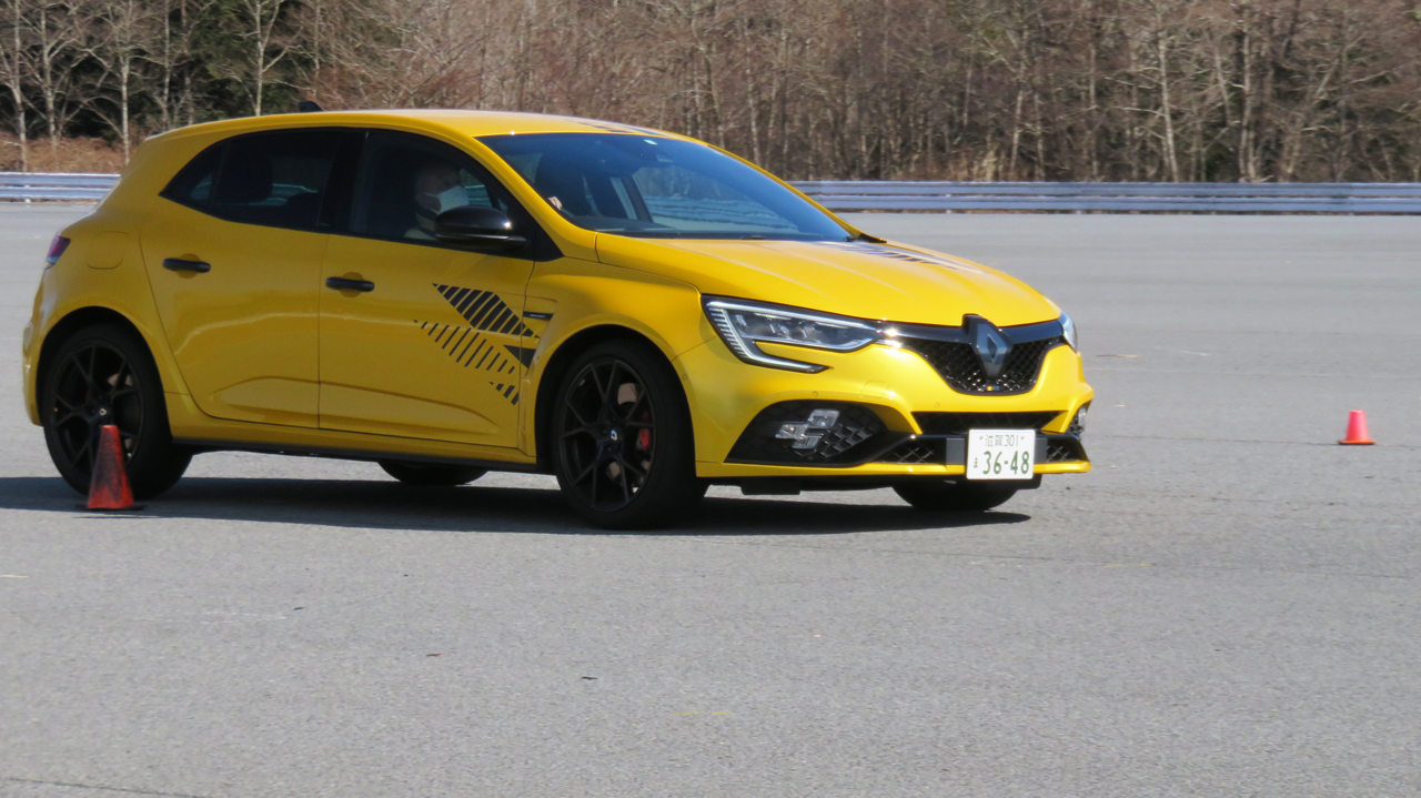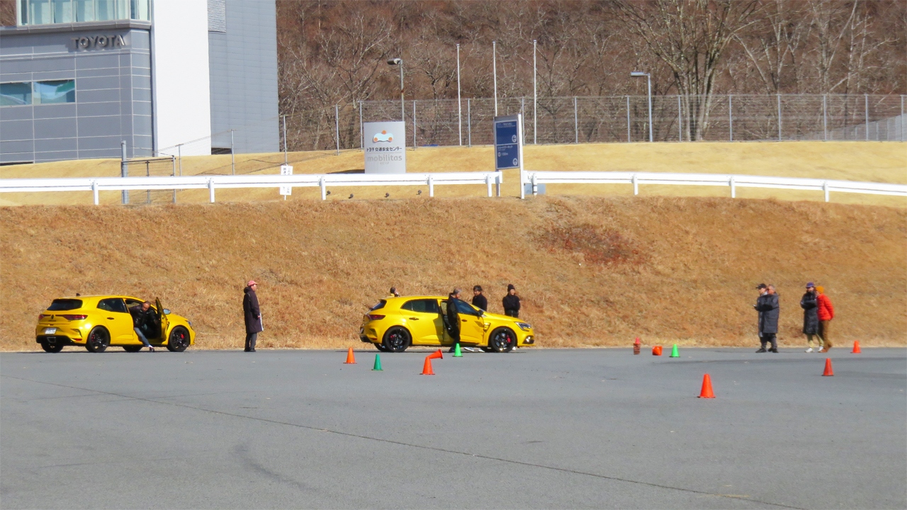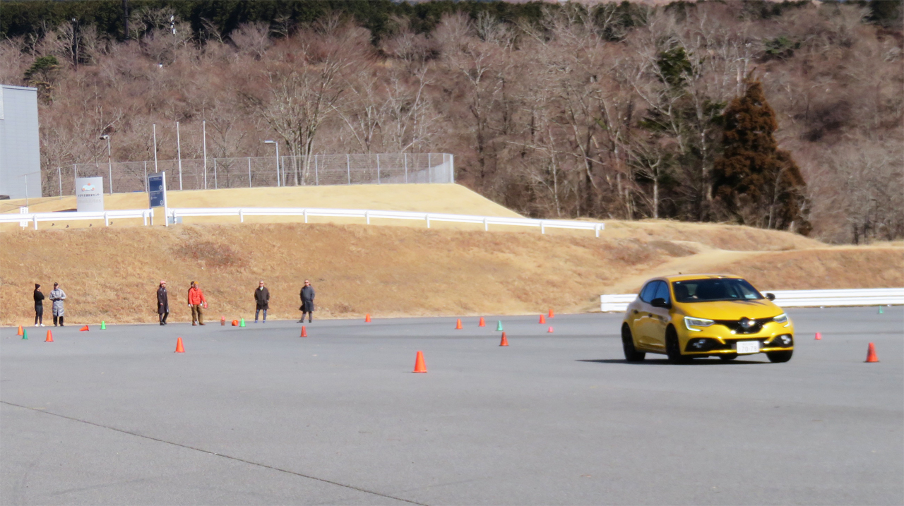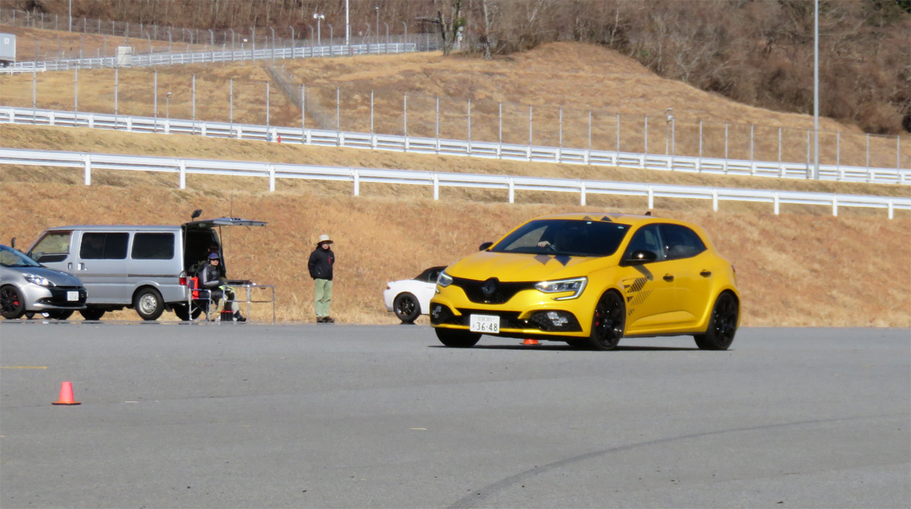 4コントロール装備のメガーヌRSウルティムをフィーチャーした2月のYRSドライビングワークショップFSW。カリキュラムはいつも通り午前中にスラロームと2種類のブレーキング練習。午後は設置したコーンのレイアウトを変更してオーバルコースを走ってもらった。