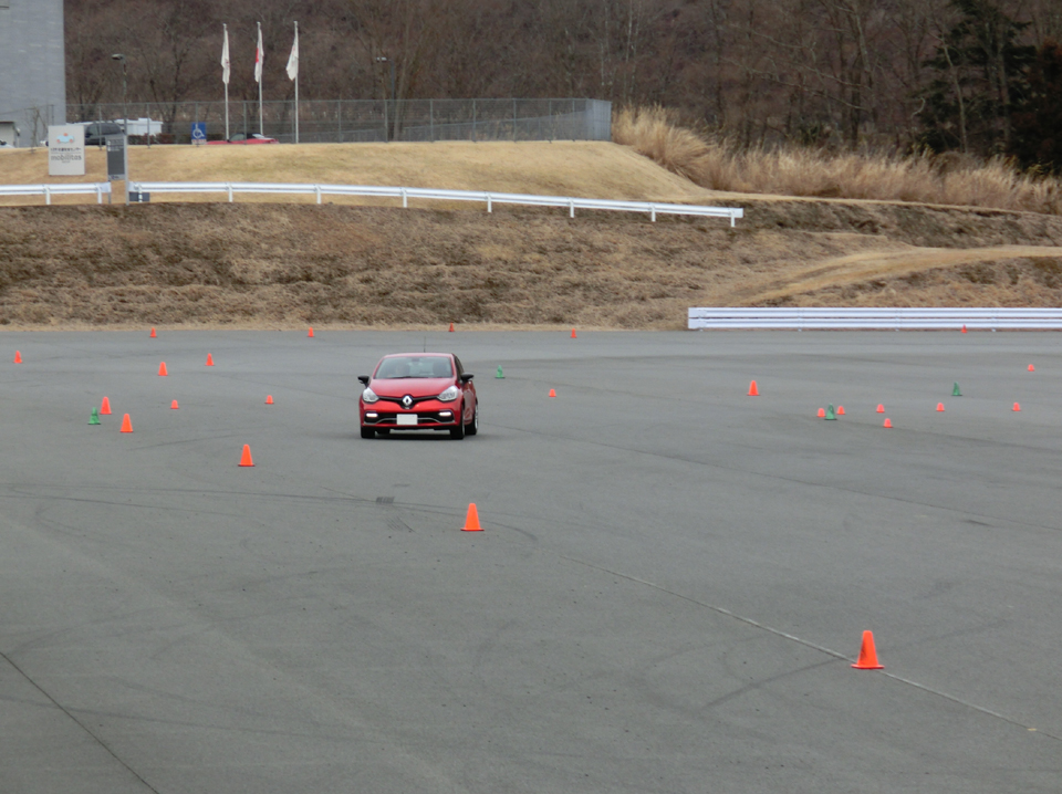 で、座学の前に聞いてみると、実はランチャ デルタHFインテグラーレ エボリューションⅡでサーキットを走っているそうだ。けれど、せっかくのドライビングスクールだから足が柔らかくて操作と挙動の関係がわかりやすい、ふだん足に使っているルーテシアGTで参加したのだと言う。