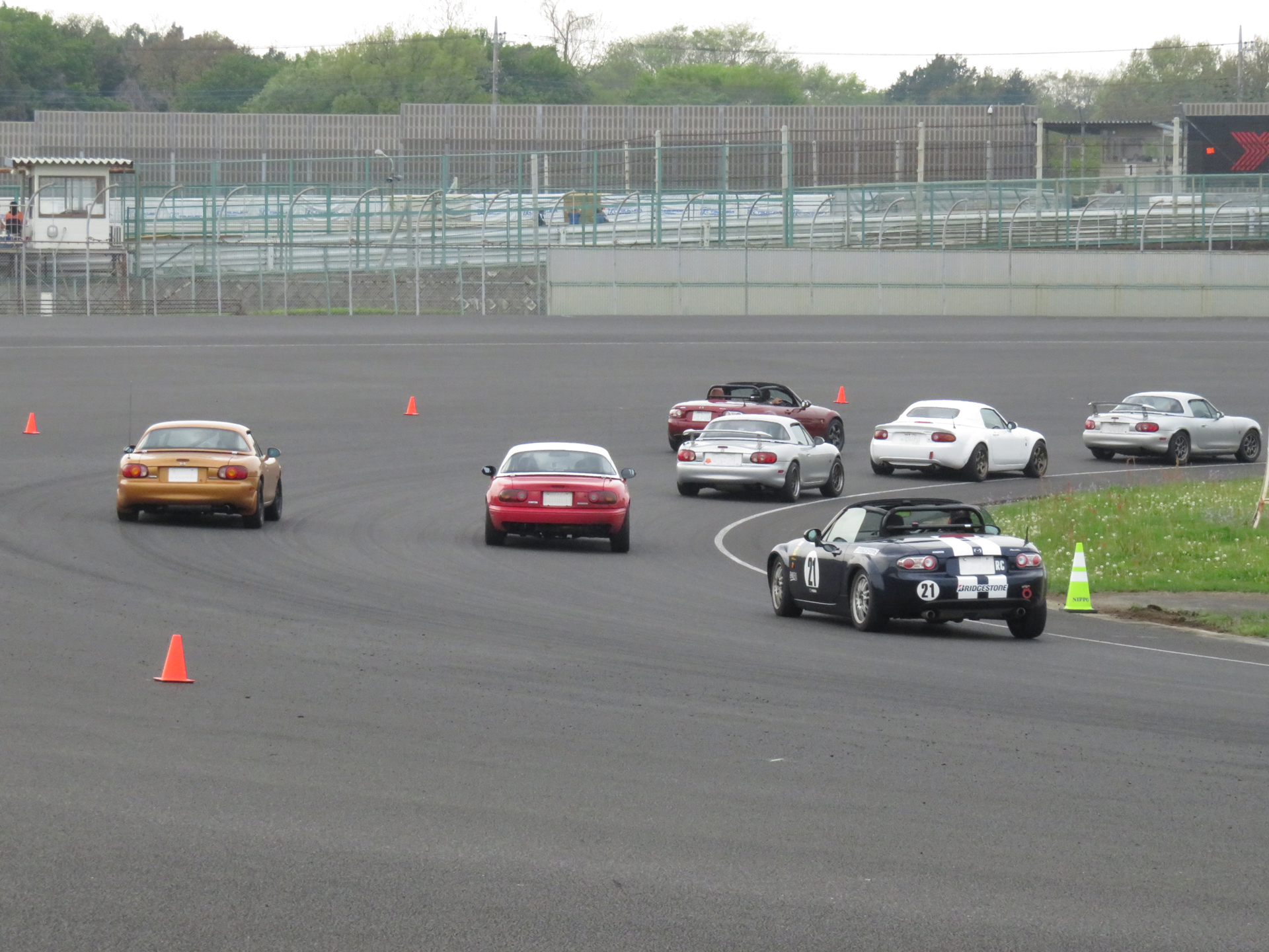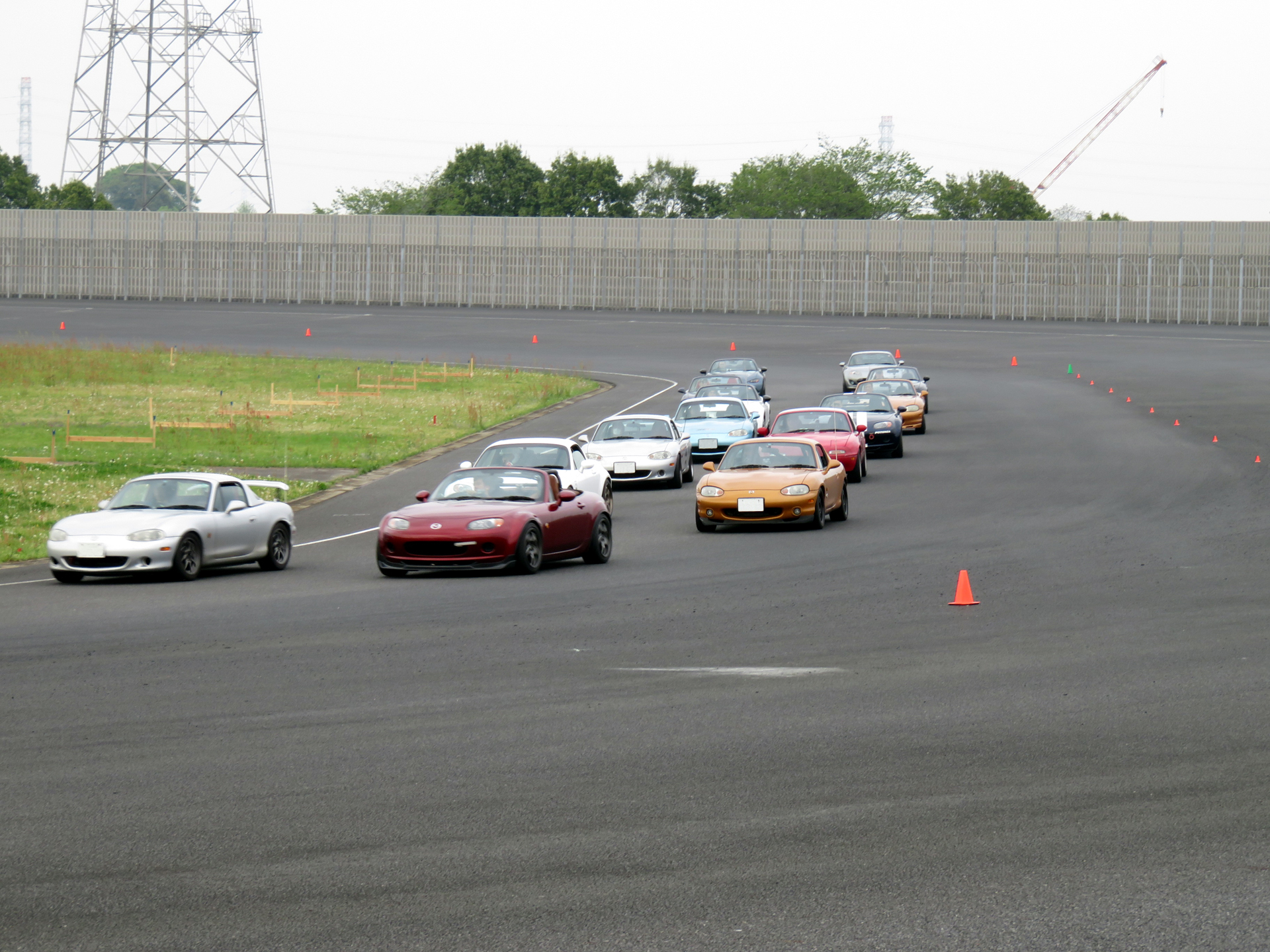 この日。中心線で測って1周541.8mのYRSオーバル筑波を最も速く周回したのはIさんのポルシェ ケイマン4。17.884秒がベストラップだから平均時速109.063キロになる。参加台数が多かったロードスタークラスのベストはNCに乗るOさんの18.677秒で平均時速が104.432キロ。コーナリング速度が高いだけあって、1Gぐらいの横Gが6~7秒続くのは得がたい体験。