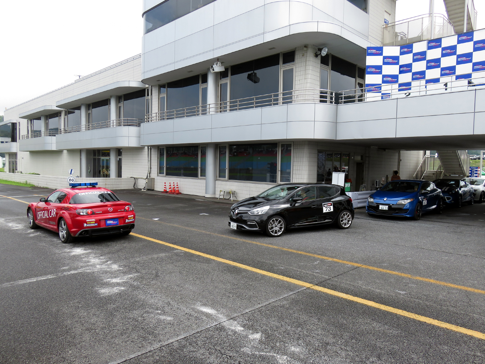 写真は雨が小降りになった6時前のルノーカップ出場車待機場所