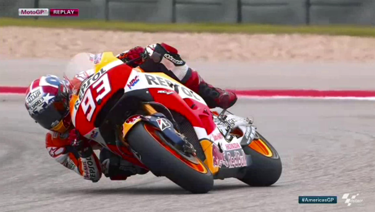 モーターサイクルレースの最高峰、2015MotoGPアメリカGPの予選の模様だ。最終的にポールポジションを獲得するマルク・マルケス選手の戦いぶりが収められている。