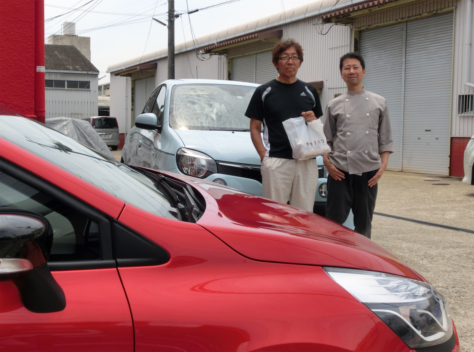 写真を撮っている間にも次から次へとお客さん。仕込みが終わった佐々木さんに話を聞いていると青いトゥィンゴが駐車場に。