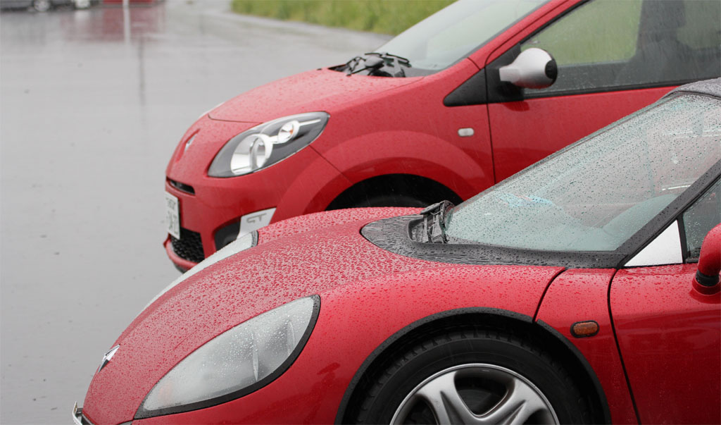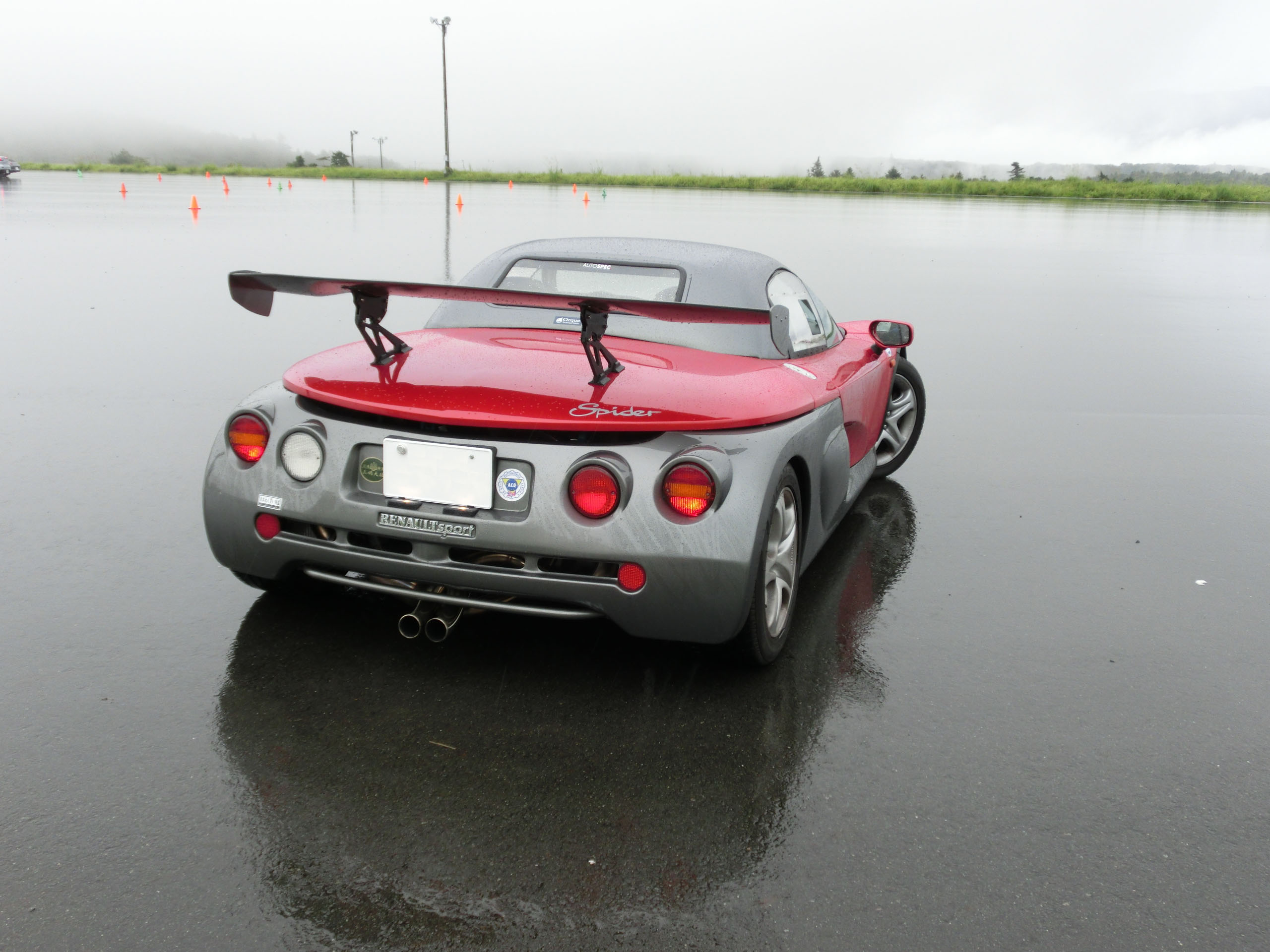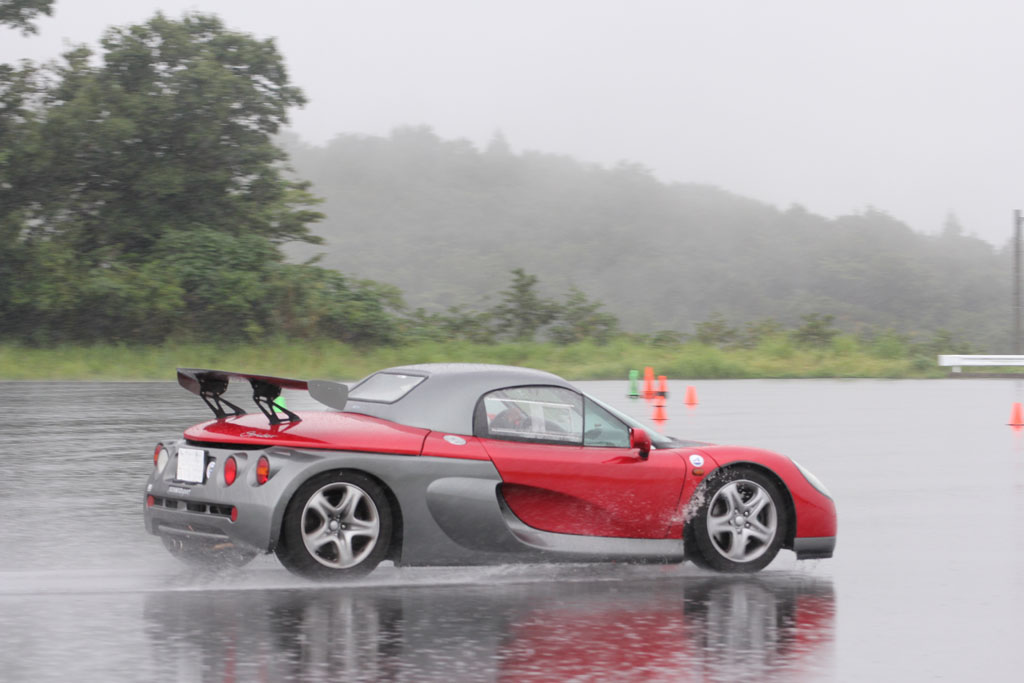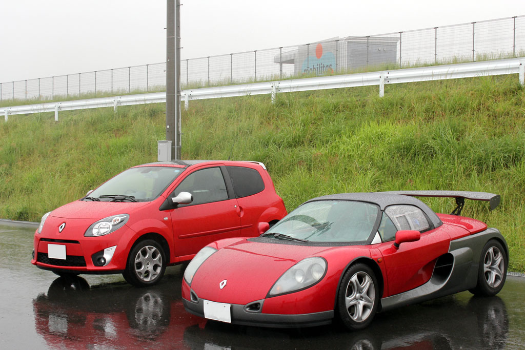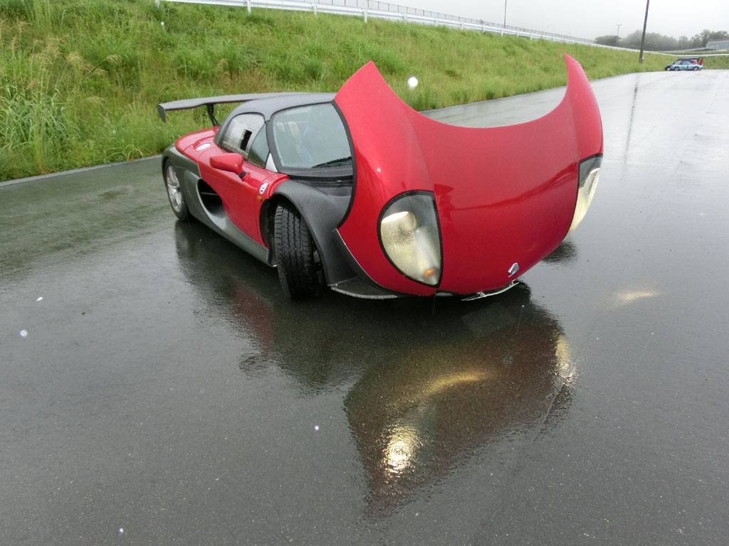 ユイレーシングスクールのスタッフの森田さんが新しいおもちゃを買った。乗ってみたかったので、無理を言って雨の中をYRSオーバルスクールに来てもらった。ホントはドライコンディションで乗りたかった、と言うと申し訳ないのだけれども、それでもルノー・スポールが市販したレーシングカーライクのスピダーの実力を垣間見ることはできた。森田さんに感謝。