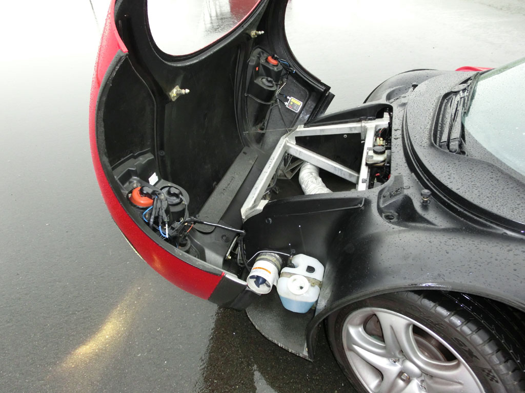 フロントのスペースフレームに落とし込むラッゲージパンを外した図