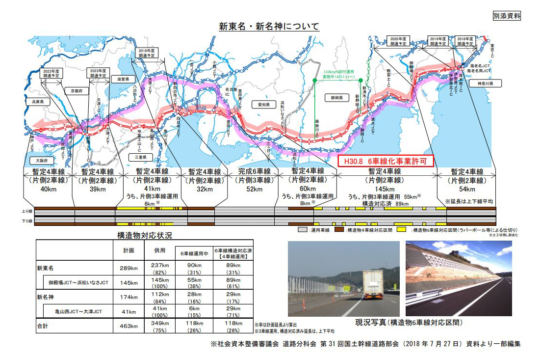 要するに国土交通大臣が事業許可を出したので、さしあたり新東名の御殿場JCT、浜松いなさJCT間を全線片側3車線にしますよ、というお知らせだ。