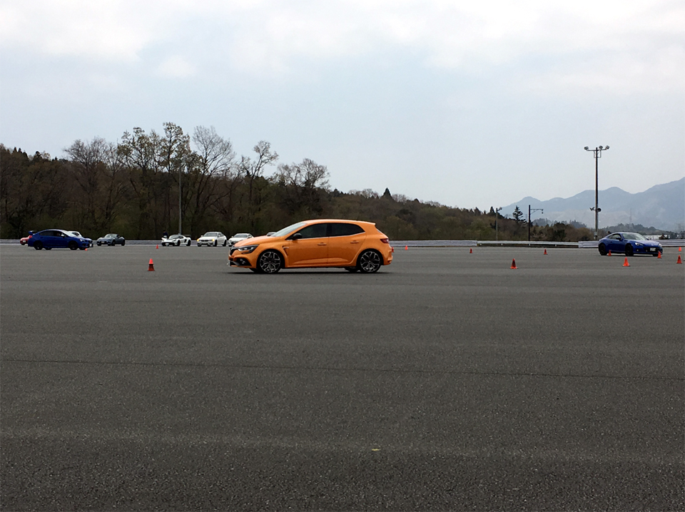 YRSドライビングワークショップの参加申し込みフォームの中に見慣れた名前が。メガーヌ3RSで何年も通ってくれていた三重県甲賀のWさん。ただし車名が変わっている。さては裏切ったなと、当日ステーションワゴンで現れたWさんに聞いてみると、仕事がらみなのと高齢のお母さんを乗せるのために乗り換えたのだとか。なら仕方ないか。