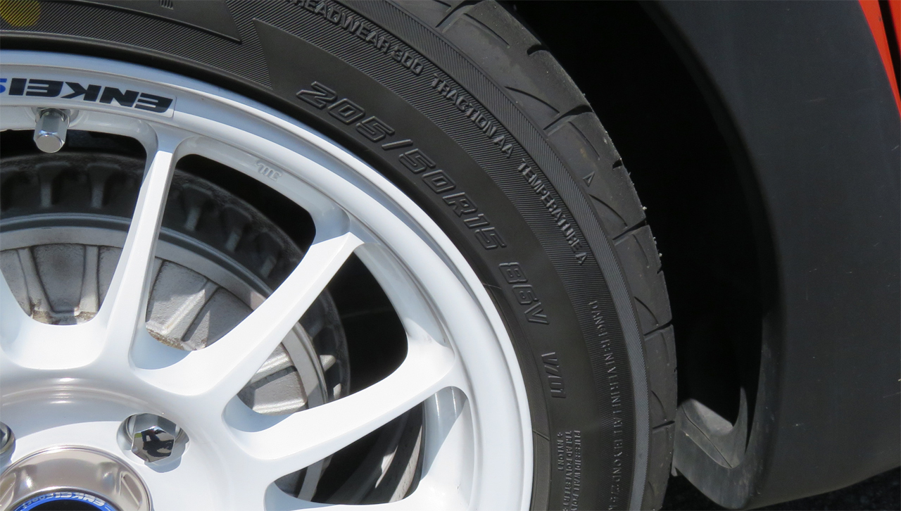 変更して前後同サイズになったエンケイRC-T5は15インチの6.5Jでインセットが45㎜